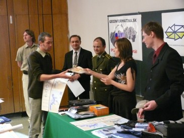 - cena: bezplatná účasť a ubytovanie na konferencii 15. rokov vojenskej geografie, licencia pre používania vektorovej mapy SR, kalendár na rok 2009, ortofotomapu Zvolena z r. 1977 a 2007 (TOPU BB), bezplatná účasť a vystúpenie na konferencii Enviro-i-fórum (SAŽP BB), batoh na notebook (rektor TU vo Zvolene), Turistický atlas SR 1:50 000 (SAGI), externý HDD 160 GB (Datalan, a.s.), trial verzie produktov Idrisi Andes a Land Change Modeler (GITech, s.r.o.), tričko (GITech, s.r.o., Datalan, a.s.), vetrovka (Intergraph CS), laserové ukazovátko (Siemens s.r.o.), kniha GIS – priestorové analýzy (Tomáš Hlásny), športové okuliare (Overland)