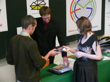 - Cena sympatie: bezdrôtový telefón Siemens (Siemens, s.r.o.), kalendár na rok 2009 (TOPU), trial verzie produktov Idrisi Andes a Land Change Modeler, puzdro na CD (GITech, s.r.o.), tričko (Siemens, s.r.o.), kniha GIS – priestorové analýzy (Tomáš Hlásny)